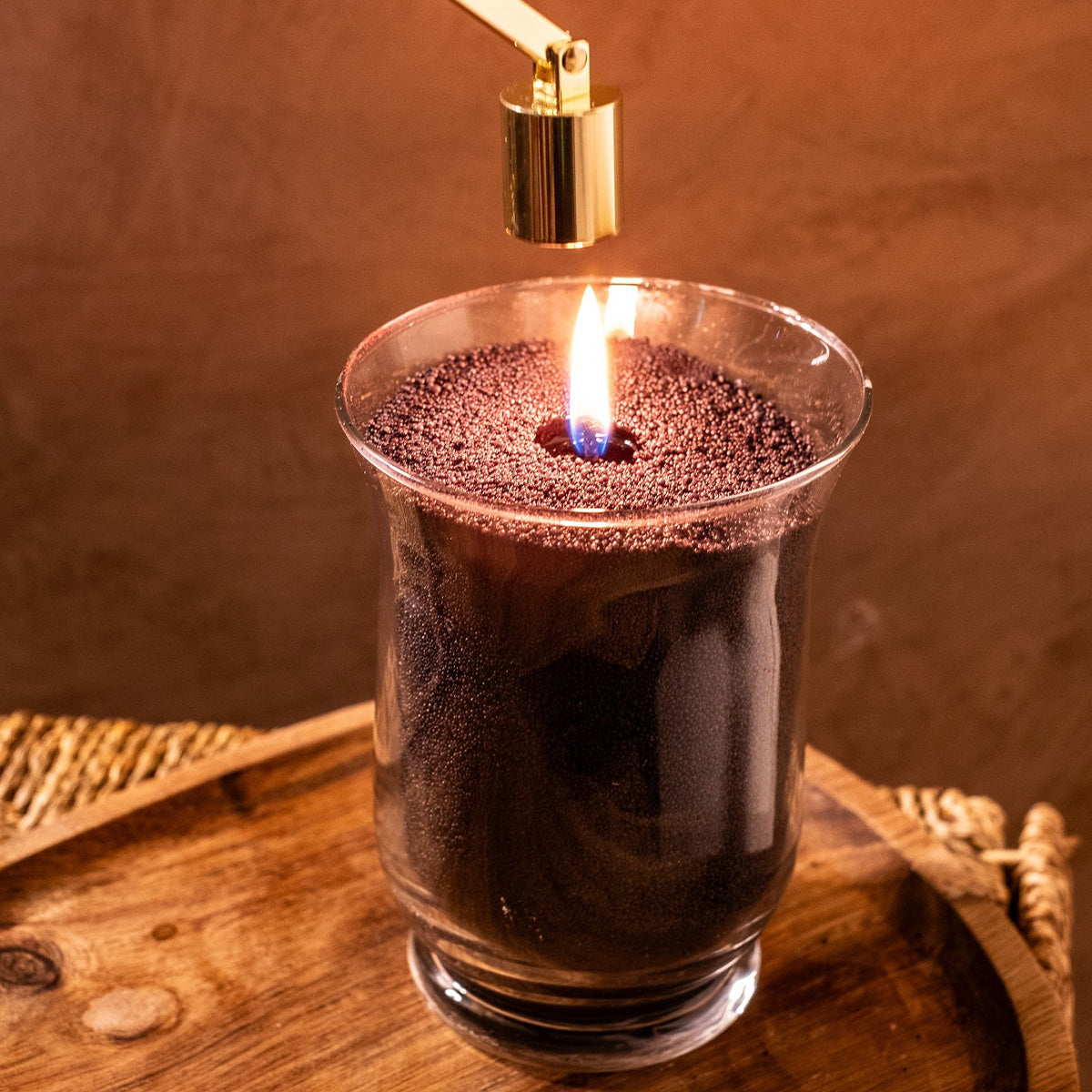 Efter brug dannes der en lille voksring omkring vægen. Fjern den forsigtigt – eller vend den om – for at få en ny, klar væge.